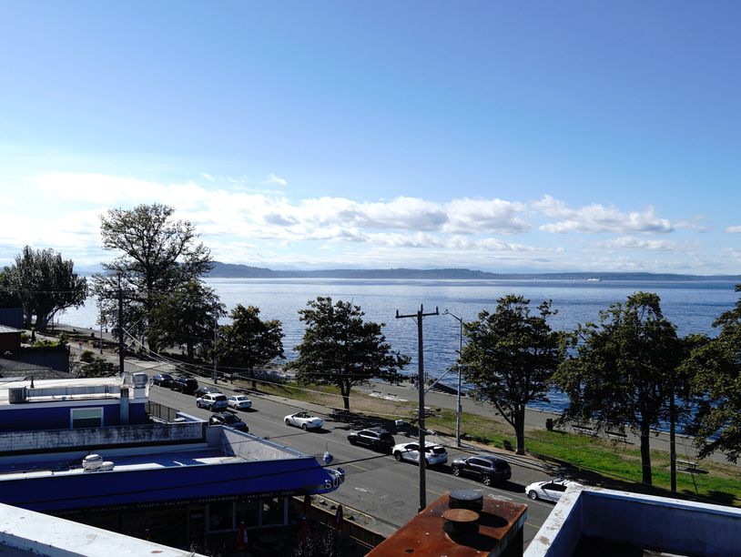 This one-bedroom one-bathroom, third floor unit is just one block from Alki Beach.